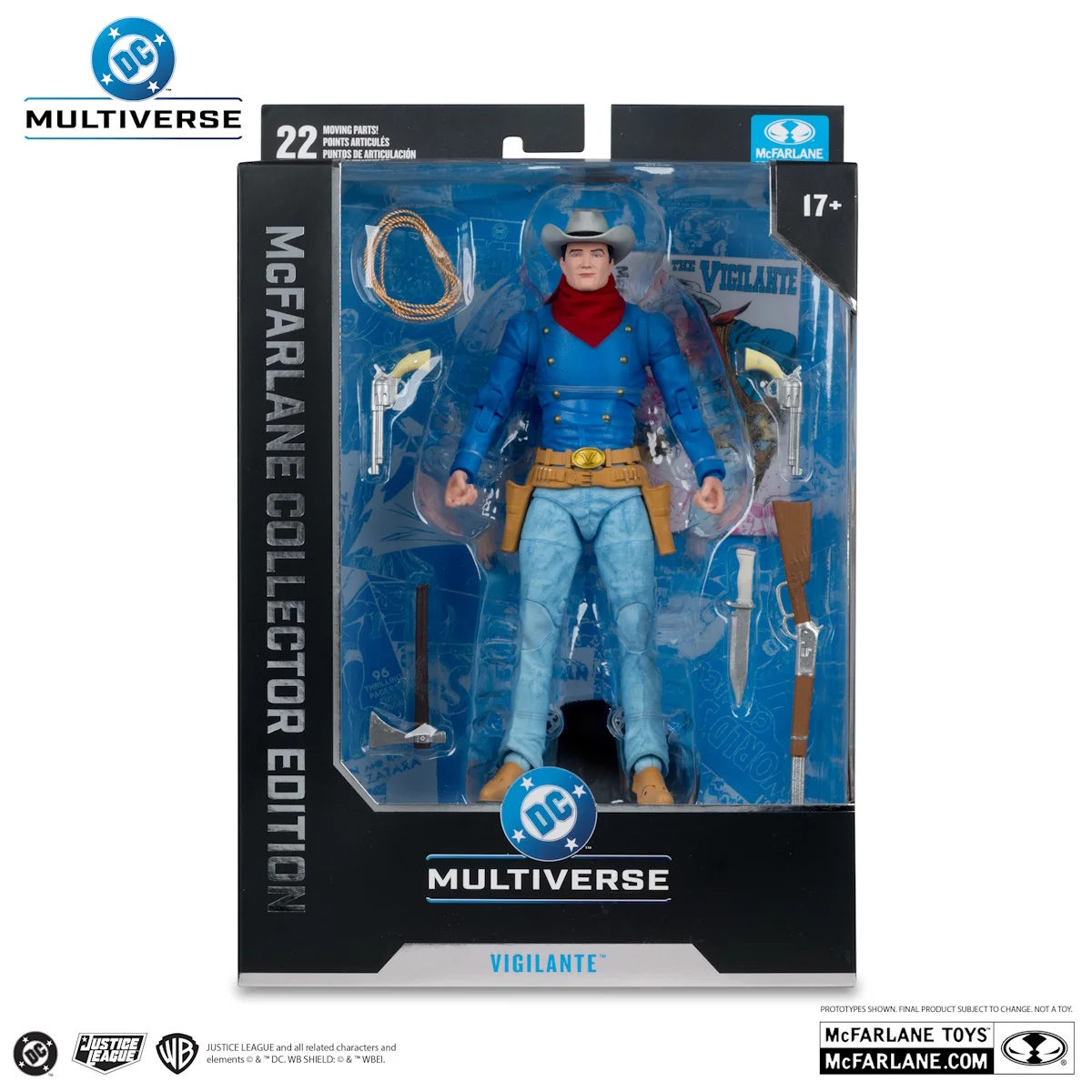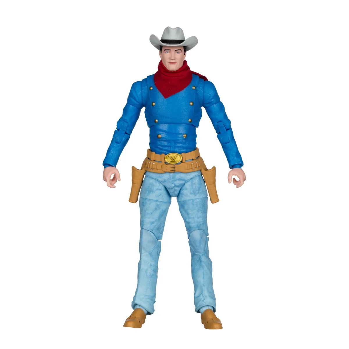 Designed with Ultra Articulation with up to 22 moving parts for full range of posing and play. Includes belt with holster and 2 revolvers, hatchet, knife, lasso and base. Also includes collectible art card with character art on the front, and character biography on the back.