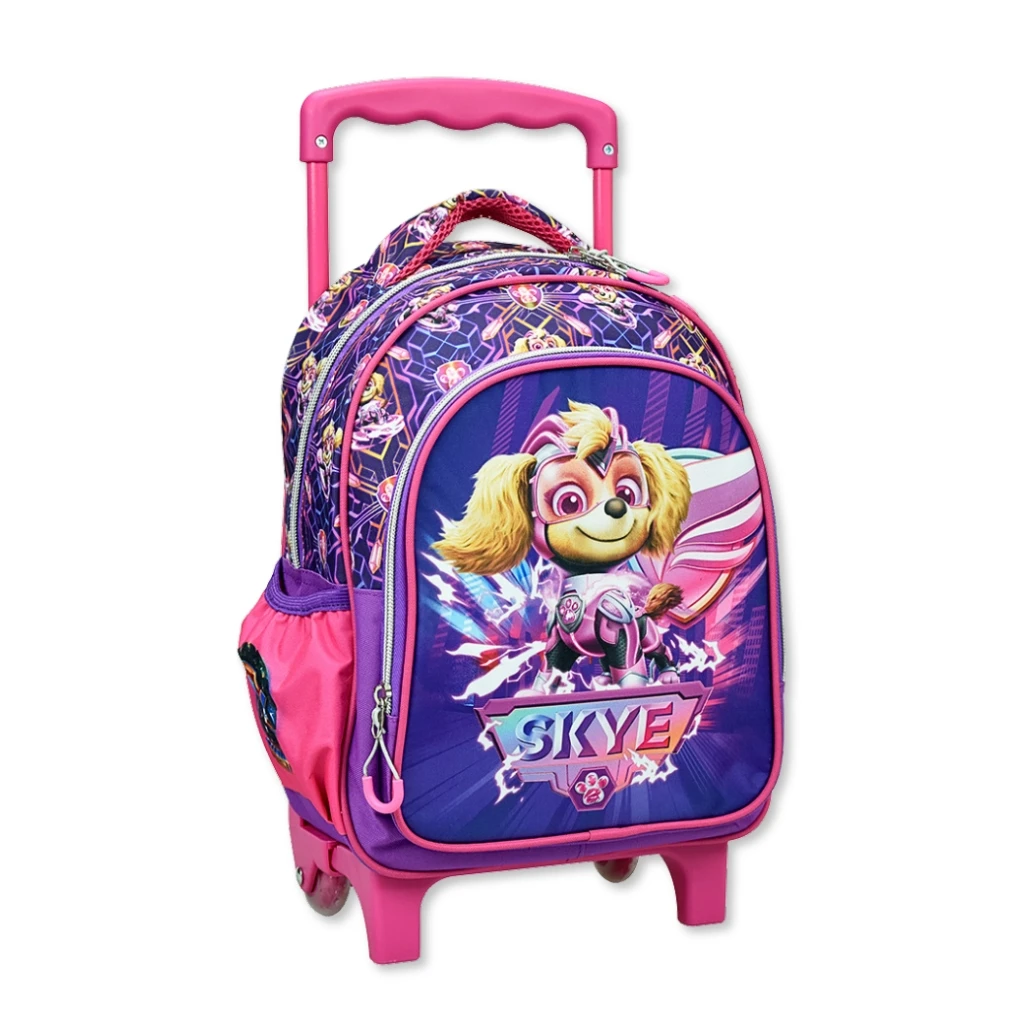 Ova praktična Paw Patrol torba na kotačiće s motivom Skye idealna je za vrtić ili izlete. Prostrani glavni pretinac i bočni džepovi pružaju dovoljno mjesta za sve potrebne stvari, dok kotačići i ručka olakšavaju nošenje.