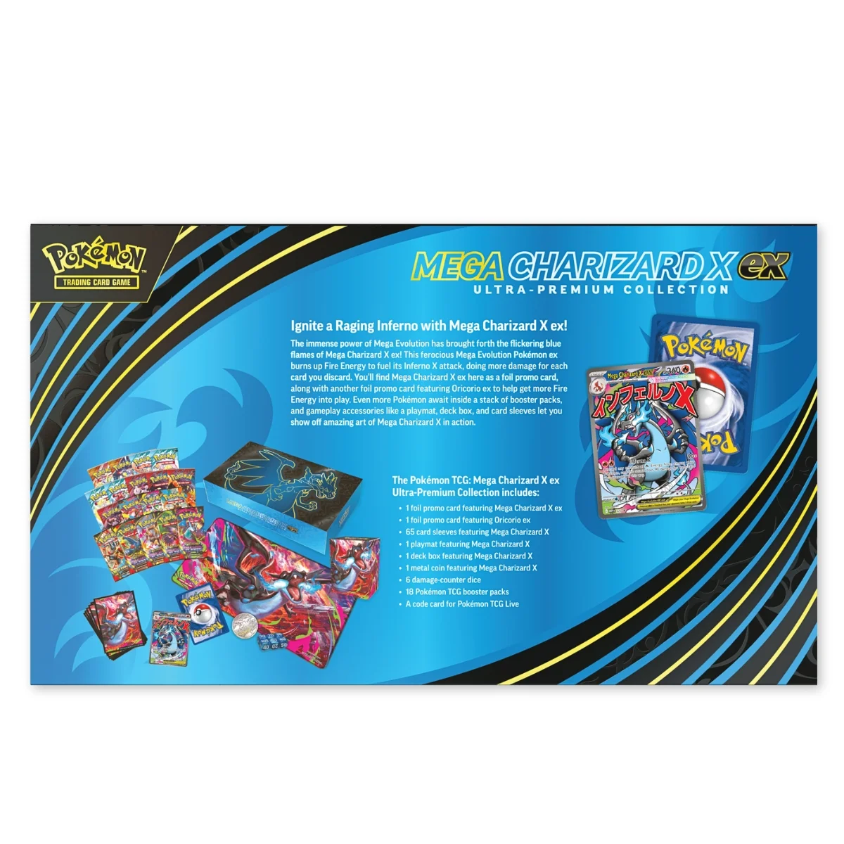The Pokémon TCG: Mega Charizard X ex Ultra-Premium Collection includes: