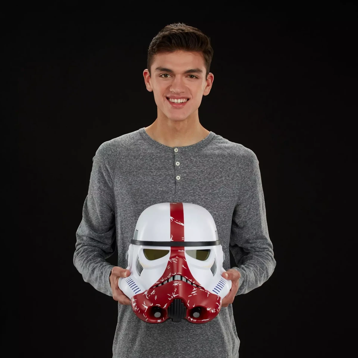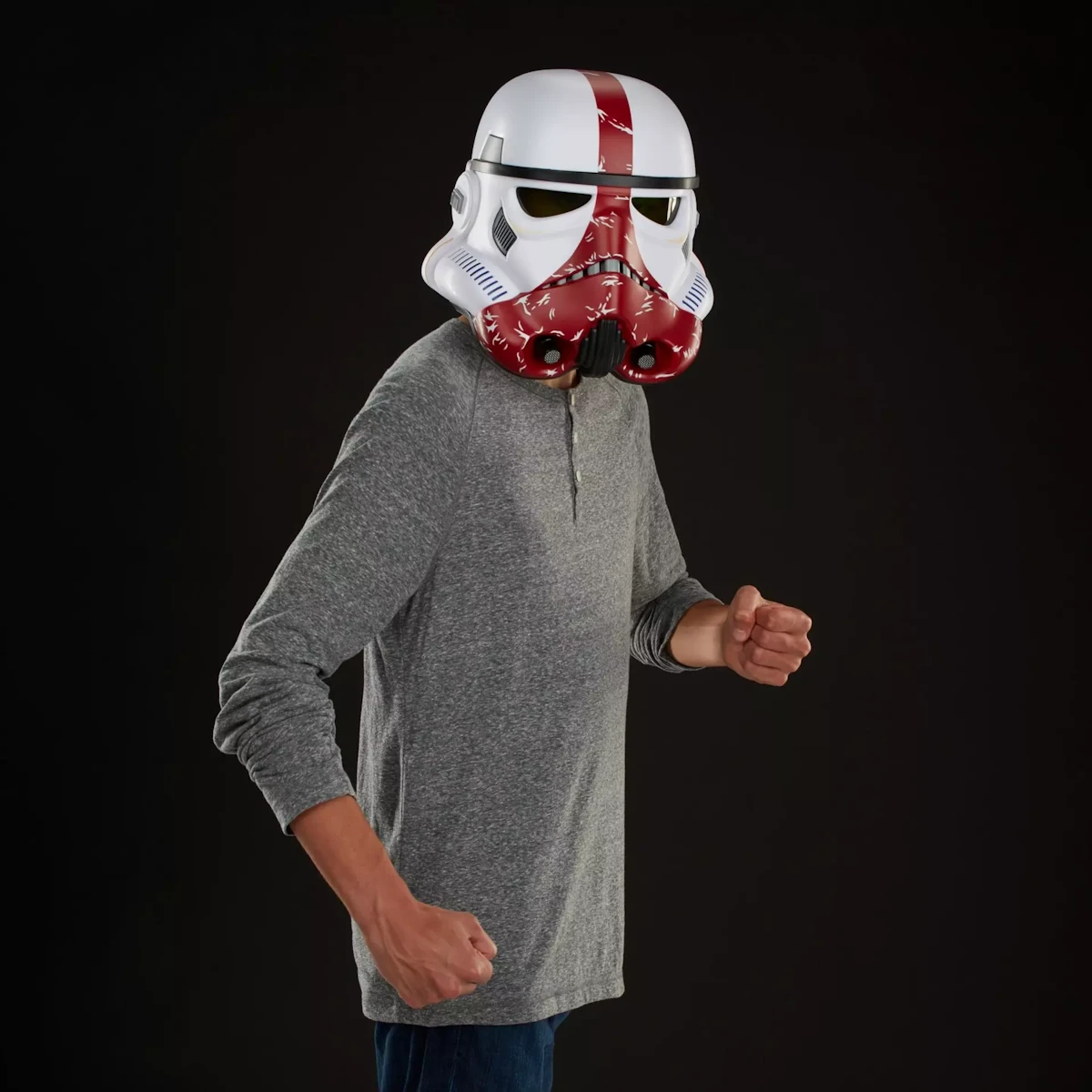 Pritisnite gumb na bočnoj strani kacige kako biste elektronički promijenili svoj glas i zvučali kao pravi Incinerator Stormtrooper. S ovom službeno licenciranom kacigom fanovi i kolekcionari Star Warsa mogu zamisliti da su na prvim crtama snaga Galaktičke Republike!